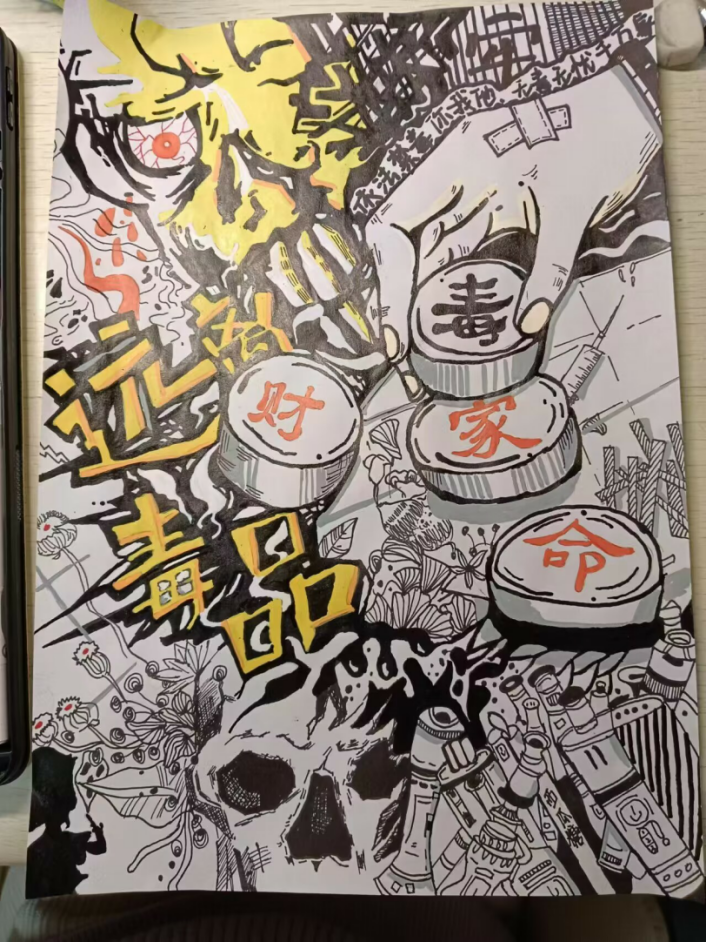 我院面向全体学生开展的禁毒作品征集活动得到同学们的积极响应,共收集手抄报类作品28幅,包括手抄报、海报和书法等多种形式;征文类作品49篇,包括诗歌、散文、议论文等多种文体。同学们以“健康人生、绿色无毒”为主题,或以画笔、或以文字,将毒品之于个人、社会和国家的危害展现得淋漓尽致,不仅体现出艺术造诣和文学素养,更表露出对健康绿色的无毒人生发自内心的呼唤和渴望。