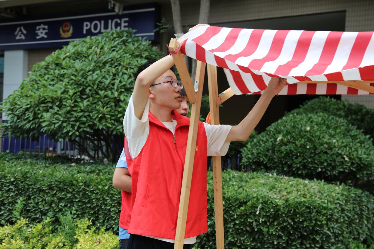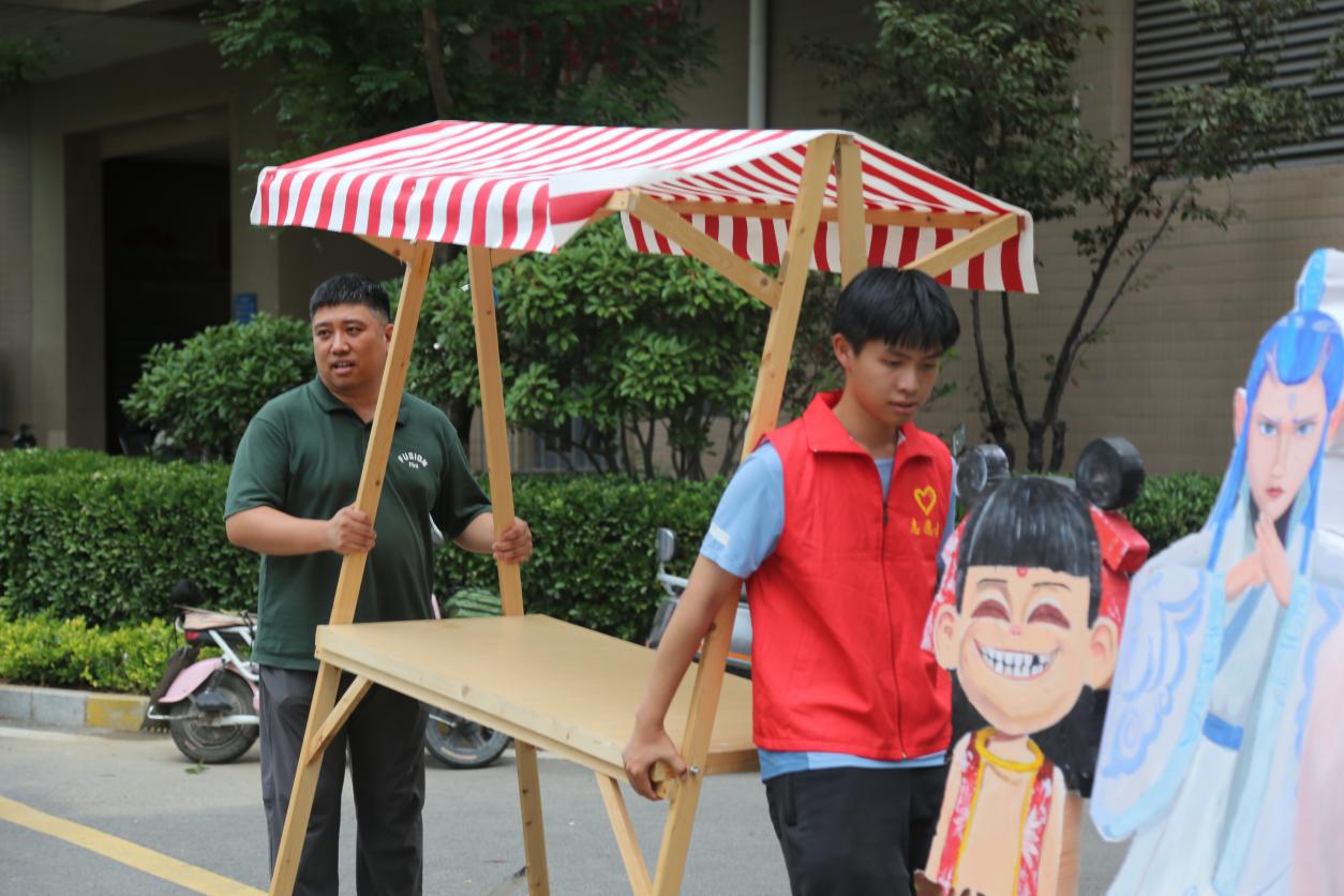 夕照熔金,蝉鸣渐歇。下午16:40,我院志愿者怀揣热忱抵达圣井碧桂园社区党群服务中心,主动协助社区工作人员筹备公益市集。活动筹备中,大家分工清晰、秩序井然:有的精心装点活动场地,有的有序搬运物资器材,有的细致规划摊位布局。在社区工作人员的统筹引导下,我院志愿者完成磨菜刀、健康义诊、公益理发、家电维修、凉菜售卖、徽章制作、跳蚤市场等特色摊位的布置工作,为公益市集的顺利举办筑牢前期准备基础。从场地布置到摊位搭建,整个过程中团队成员既各司其职又协同联动,以高效的执行力与默契的协作精神,为活动的正式开展搭建起坚实的保障体系。