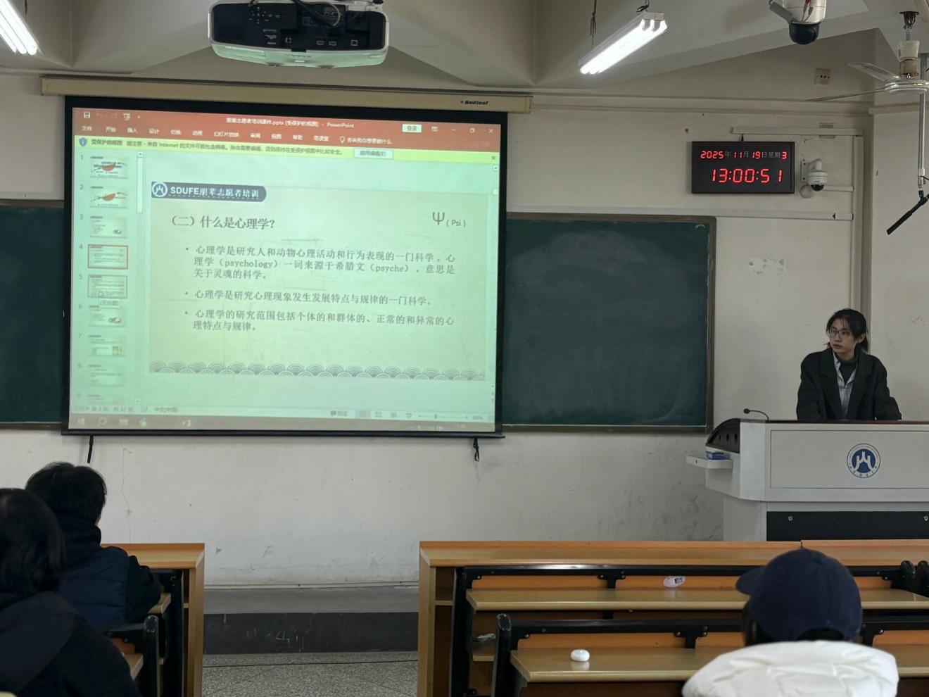 管光栋从心理学的概念及特点切入,引出当代大学生面临的心理困惑,进而强调朋辈志愿者服务同学心理健康的职责。围绕“尊重、共情、真诚”的工作态度,传授给朋辈志愿者在服务中识别同学心理危机的方法,以及身边同学遭遇心理危机时的帮扶经验,同时细化校园志愿服务规范与应急处置流程,明确服务边界和责任清单,筑牢志愿者的规则意识与风险应对能力。
