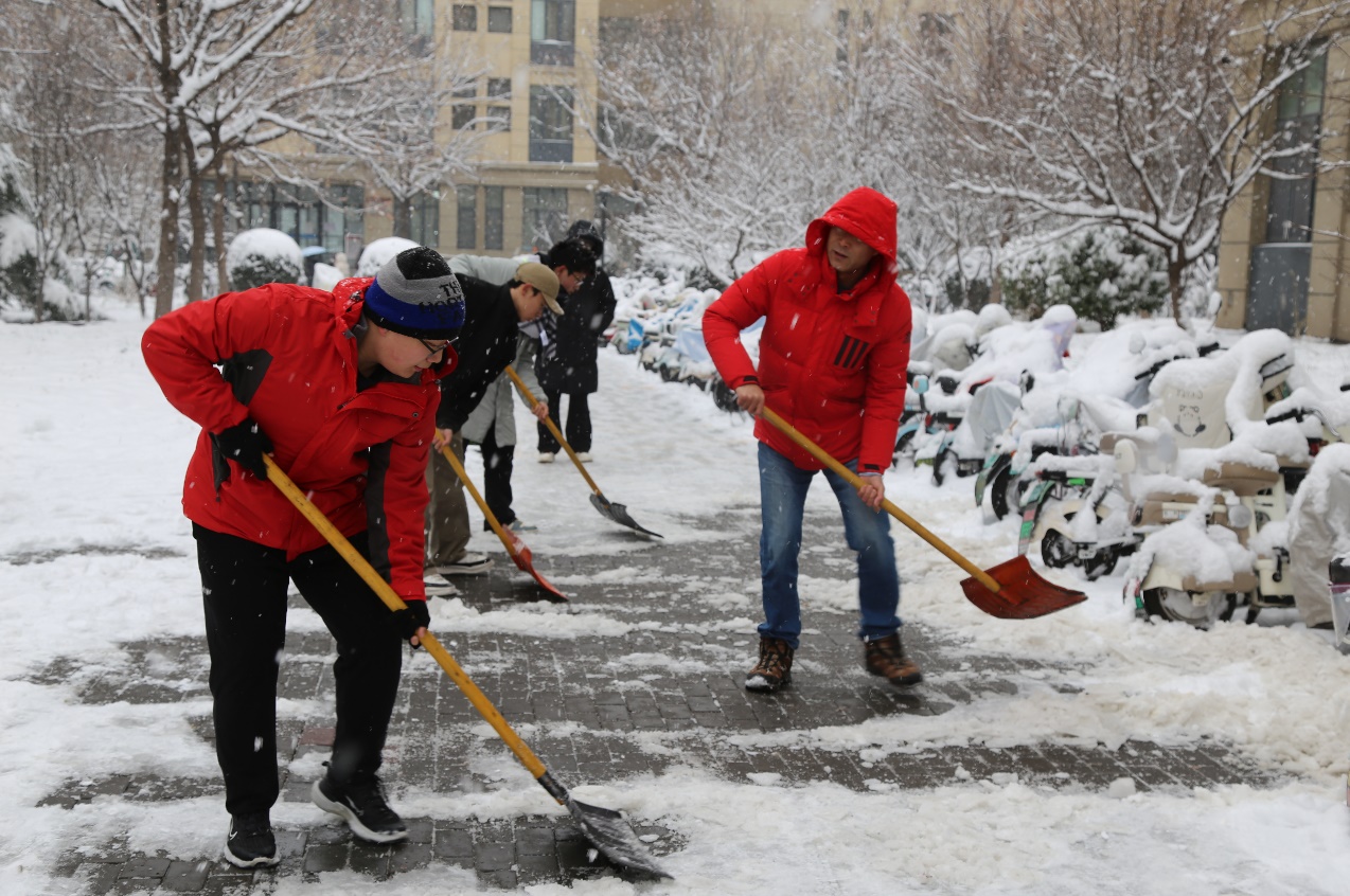 受强降雪天气侵袭,校园道路普遍积雪结冰,给师生出行增添诸多安全隐患。为保障师生出行安全,尽快恢复校园秩序,经济学院于12月13日在章丘校区、舜耕校区组织开展校园清雪义务劳动,学院学生党员、学生干部发挥先锋模范作用,带头参加清雪劳动,为打造安全畅通的出行环境贡献力量。