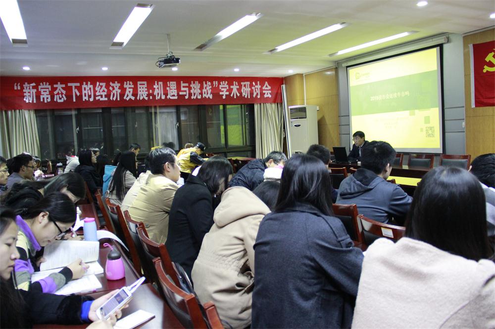 10月30日晚上7:30, 中国人民大学经济学博士,现任中诚信国际研究咨询部总经理,主管中诚信国际博士后工作站及部门工作的张英杰教授在舜耕校区天舜大厦600会议室作了题为“2015债市会延续牛市吗 ?——降息后收益率反升,存量债务如何置换”的精彩讲座。讲座由经济学院副院长王传荣主持,部分老师和学生到场聆听。