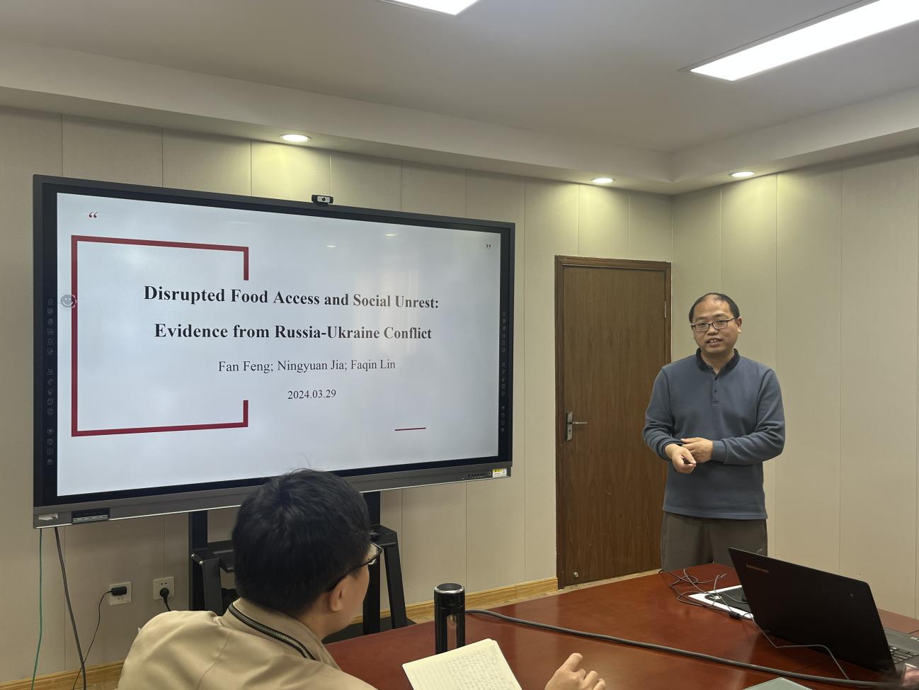 本次论坛的主题是“Disrupted Food Access and Social Unrest: Evidence from Russia-Ukraine conflict”。研究以当前国际形势为背景,使用DID模型估计地缘政治冲突对地区小麦供给和价格的影响。针对研究发现,林发勤教授提出了减少贸易壁垒、为农业投入提供补贴,提高耕地的可利用性、降低土地使用费等建议。