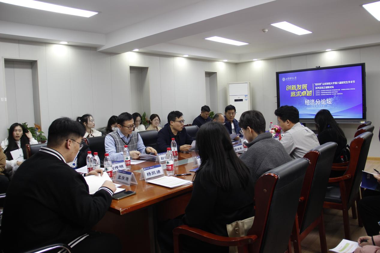 11月11日,“经科杯”山东财经大学第八届研究生学术界创新论坛—经济分论坛于下午两点半在舜耕校区行政楼1208室举行。本次会议由经济学院副院长张明志和资源环境系副主任赵传松主持,出席本次会议的点评人分别是:《经济与管理评论》编辑部王瑞、经济学院宏观经济学系副主任朱维超、应用经济系副主任刘传明。