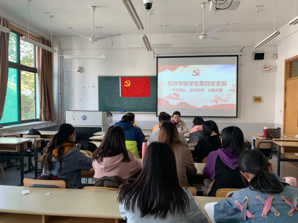 (通讯员 李春雨)10月30日下午,经济学院副院长齐杨以“不忘初心、坚守信仰”为主题,在舜耕校区1310教室为学生第四党支部讲专题党课。学生第四党支部书记王琦主持党课。