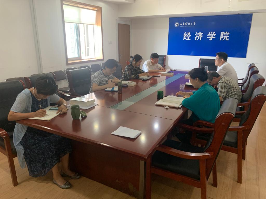 经济学院党委高度重视这次专题学习班的重大意义,认真组织理论学习。8月31日由干部自学,9月1日、2日,经济学院党委在办公楼1208召开党委理论中心组会议,进行了两天专题学习。在党委理论中心组会议上,班子成员围绕《习近平治国理政》、《山东省教育厅关于组织申报山东省高水平大学和山东省高等学校高水平学科的通知》、《山东省人民政府办公厅关于印发<山东省高水平大学建设实施方案>的通知》认真学习,并做好读书笔记。每位成员轮流领读,其他成员讨论交流。