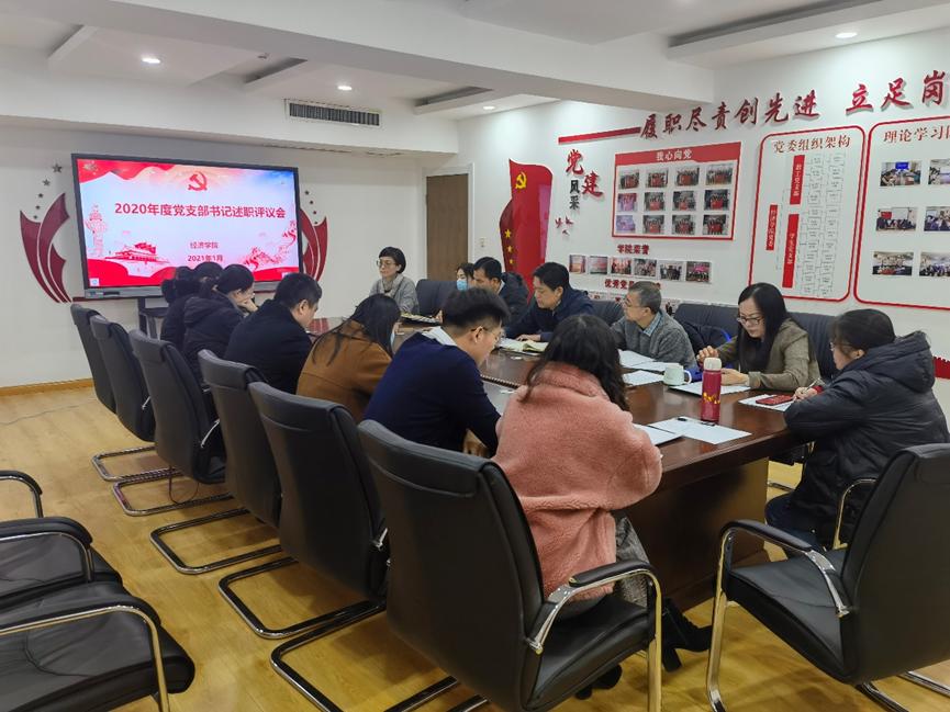 (通讯员 李冰封 朱海林)为深入学习贯彻习近平新时代中国特色社会主义思想和党的十九大精神,进一步压实党支部书记履行全面从严治党责任,履行基层党建工作责任,推动提升基层党组织政治功能和组织力,根据学校党委工作部署要求,结合学院实际,经济学院党委召开2020年度党支部书记履行全面从严治党责任和抓基层党建述职评议考核会议。院党委书记姜伟,院长谢申祥,党委副书记高峰、李冰封,副院长彭留英、齐杨,各党支部书记参加会议,会议由李冰封主持。