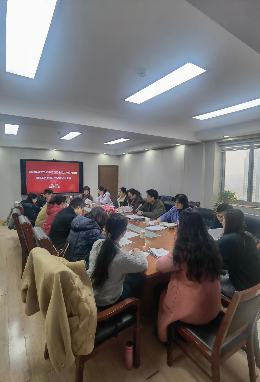 3月4日下午,经济学院党委在舜耕校区办公楼1208会议室召开2023年度党支部书记履行全面从严治党责任和抓基层党建工作述职评议会议。学院领导班子成员及全体党支部书记参加此次会议。