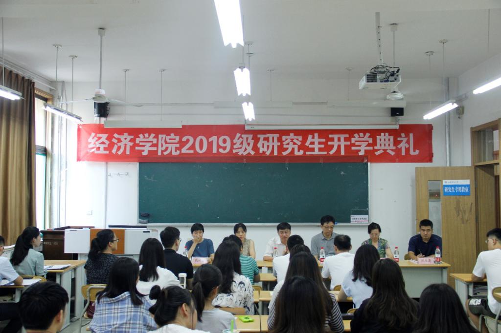 藏传琴代表经济学院全体教师对在座的新生表示祝贺,勉励大家要注重创新性学习,希望同学们能够恪守学术诚信,有明确的的研究生阶段规划。随后,2017级研究生刘玉鑫和2019级研究生代表冯泓铭分别代表作为在校生代表和新生代表发言,表达了对经济学院为学生提供良好学习平台的感谢,表示在接下来的学习生活中充分利用学院丰富的资源,学以致用,知行合一。
