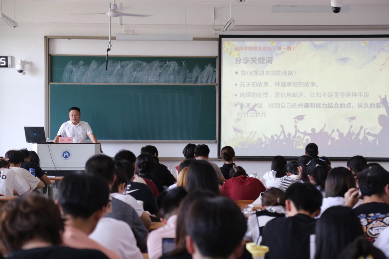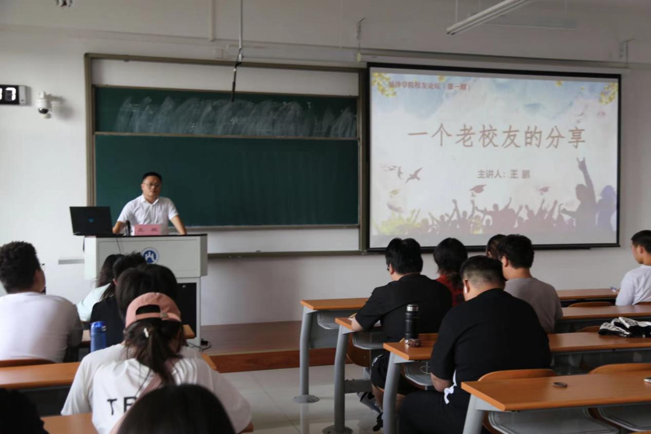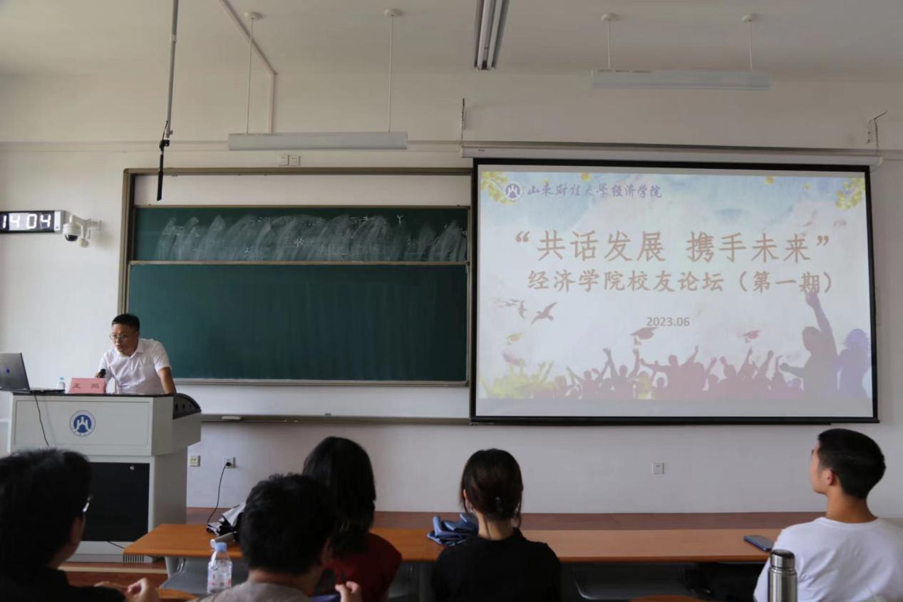 (通讯员:付雯 公天琦 孙婷潇)为搭建学院与校友、校友与校友之间交流平台,凝聚和发挥校友力量,加强学生专业思想教育,引导学生明确学业、职业发展方向,6月15日下午,经济学院在圣井校区七号教学楼举办“共话发展 携手未来”经济学院校友论坛第一期,本次论坛由经济学院2002级经济学专业校友、山东弘裕事务所集团总经理王鹏主讲,经济学院20、21、22级共150余名学生到场参加。本次论坛由院团委书记付雯主持。