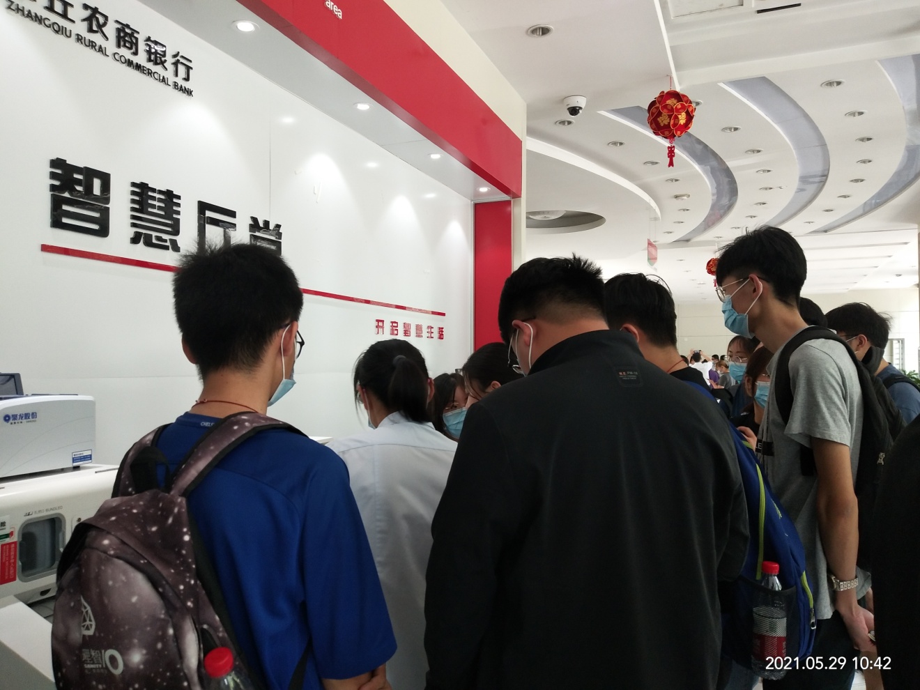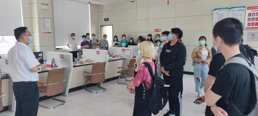 11点,在相关工作人员陪同下,同学们在圣井支行营业部进行了农村金融、智慧金融业务体验。