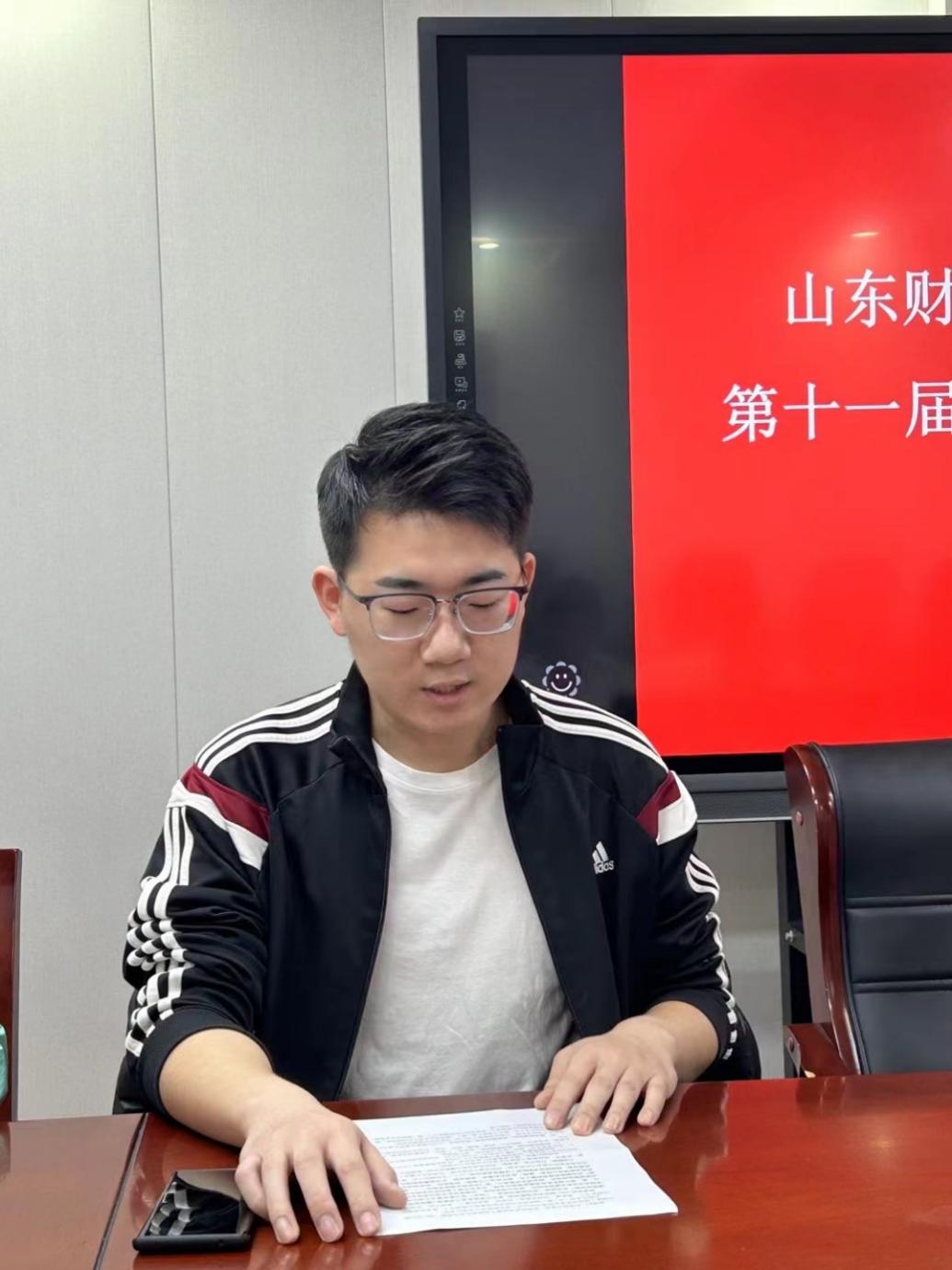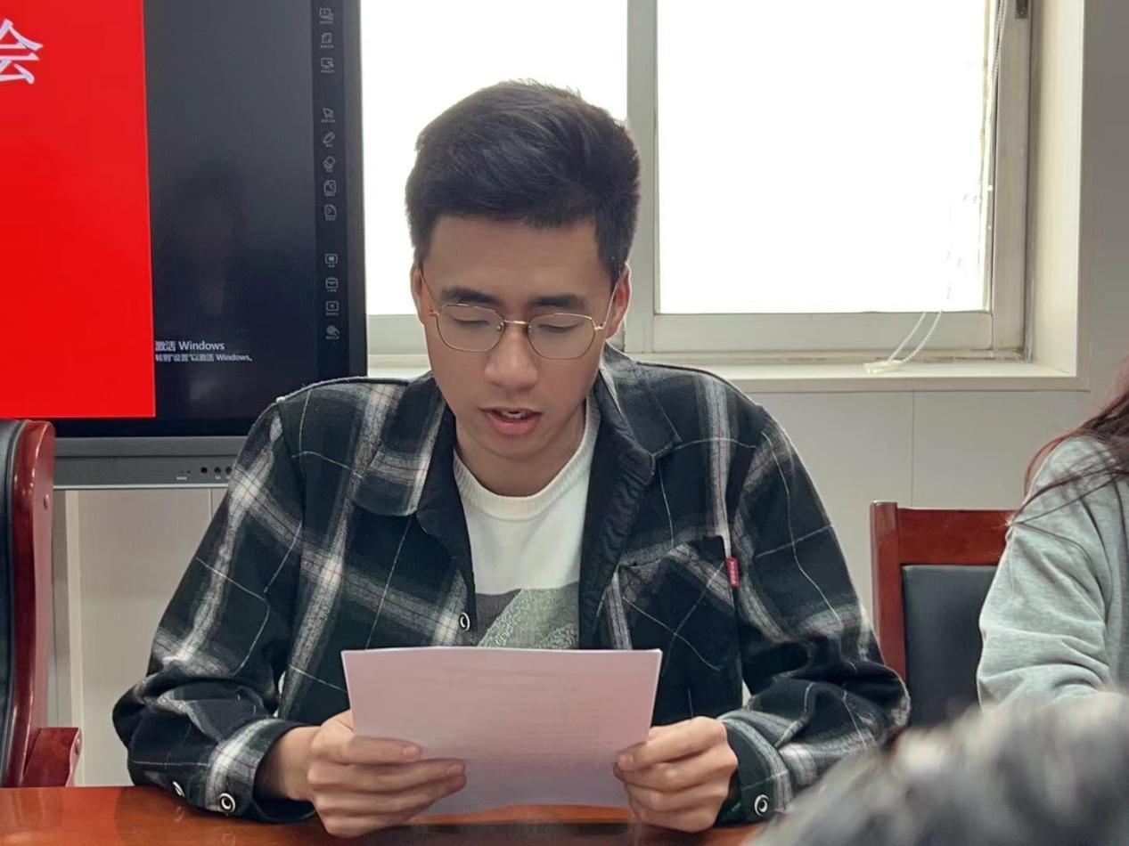 然后,王克轩代表第十一届研究生会进行发言。王克轩首先对于领导老师及第十届研究生会全体成员给予的帮助表示了诚挚的感谢,然后对新学期以来的工作活动进行总结,并提出了今后在工作中应注意的问题:一、坚定理想信念,发扬实干精神。时刻保持奋进姿态,脚踏实地做事;二、保持优良作风,发挥榜样作用。在工作中要有迎难而上的精神,做到严于律己,与同学们共同进步;三、打造品牌活动,彰显研会特色。结合实际创新工作方法和活动形式,更加贴近生活和学生;四、加强规范管理,完善制度建设。树立组织纪律意识,强化内部管理,完善规章制度,建设优秀管理团队。