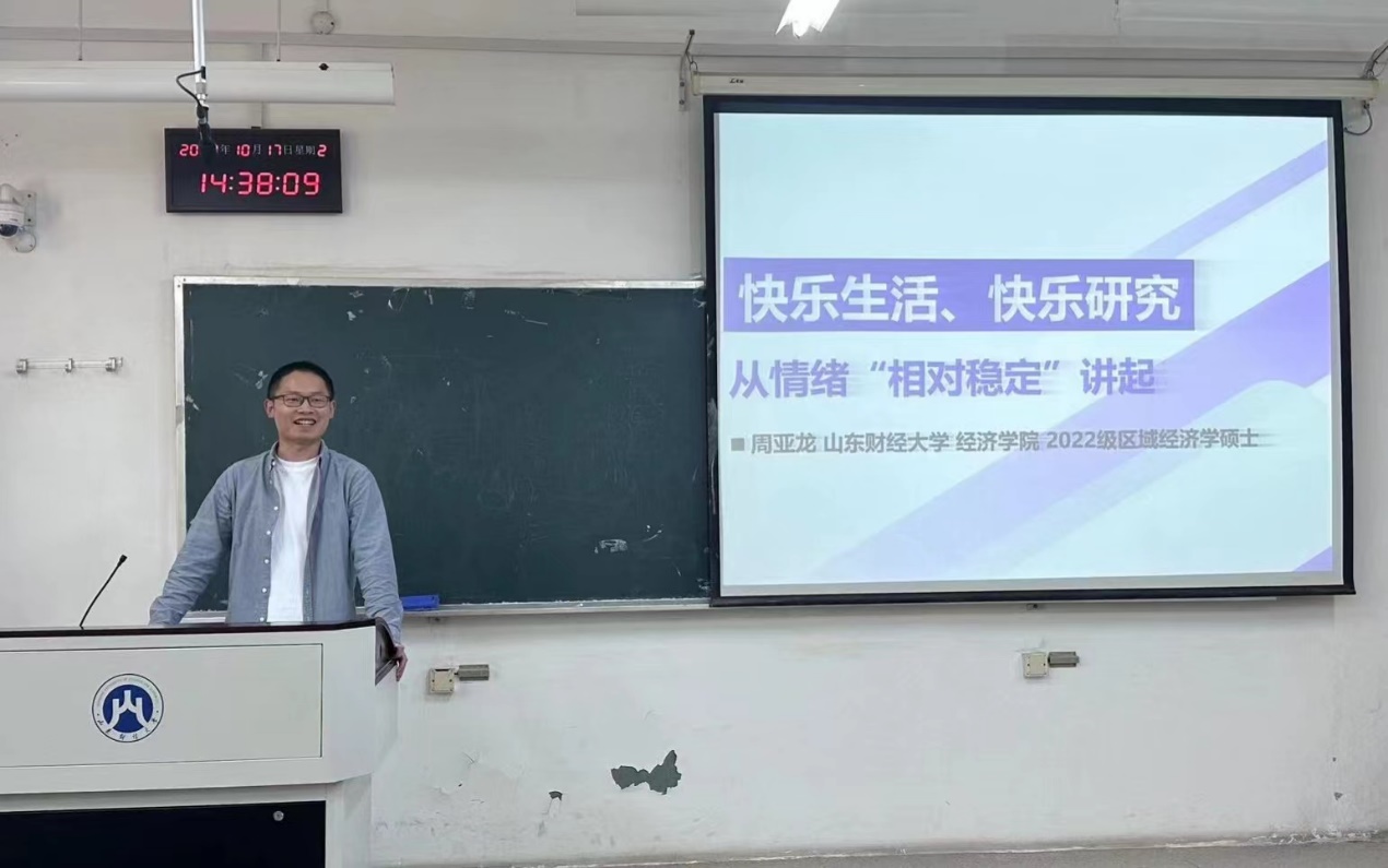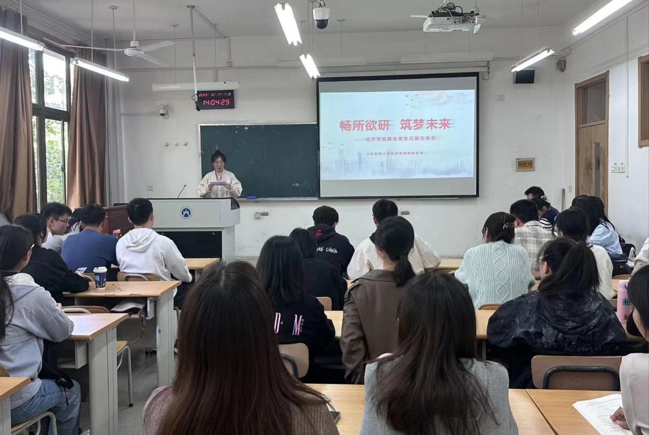 (通讯人:张驰)2023年10月17日下午,经济学院“畅所欲‘言’,筑梦未来”新生老生见面交流会在舜耕校区顺利举行。活动邀请了2021和2022级优秀研究生代表做经验分享,2023级全体研究生新生参加本次活动。活动由孔雪主持。