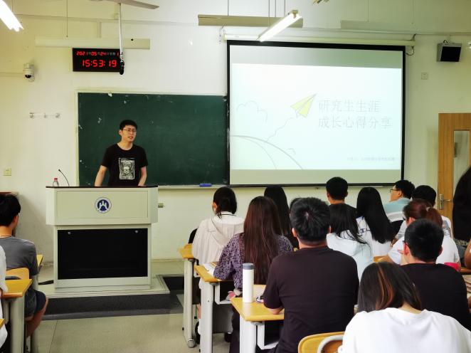 本次活动共设置“研究生生涯成长心得分享”、“老师点评和总结发言”、“学生提问”三个环节。活动开始前,李冰封对点评人和三位主讲人作了简单介绍,要求研一的同学们认真学习学长学姐的宝贵经验,合理规划研究生阶段的时间。