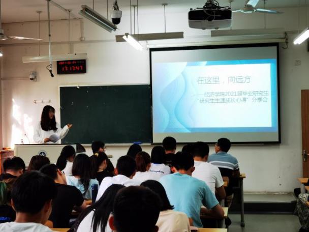 (通讯员:李淑楠)为有效提升我院研究生科研实践能力,帮助研究生更好地规划研究生阶段的生活,经济学院研究生会于2021年5月24日下午在舜耕校区3302教室举办“在这里,向远方”——2021届毕业研究生“研究生生涯成长心得”分享会。经济学院党委副书记李冰封、硕士研究生导师张明志副教授出席本次活动,2020级全体硕士研究生参加本次活动,活动由王鑫主持,由邓豪、赵婧、于周顺三位优秀毕业生主讲。