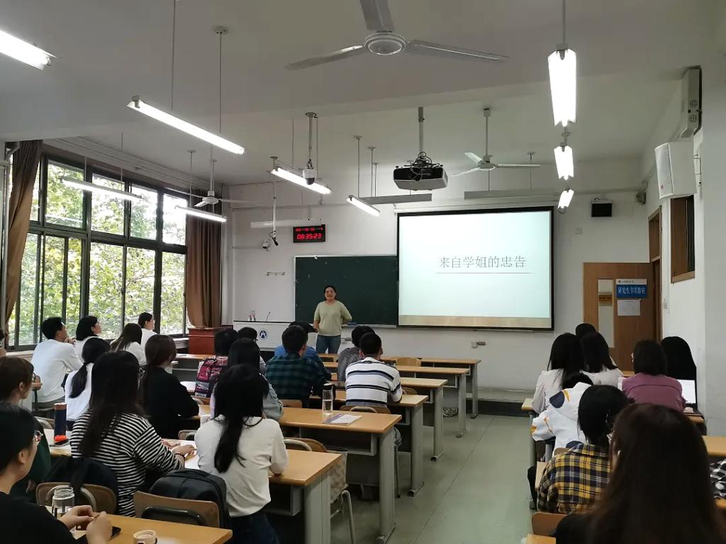 贾庆英以“来自学姐的忠告”为主题向研究生提出了十二字忠告——谨慎选择、全力以赴、追逐优秀。