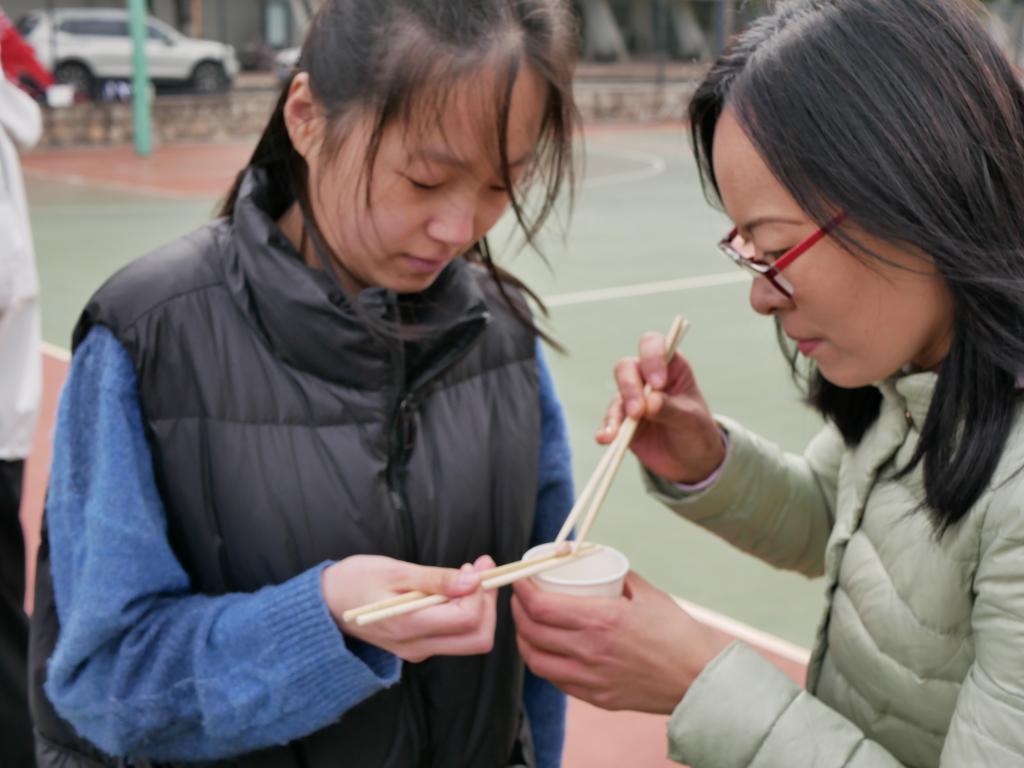 本次运动会共设置毽子接力、企鹅漫步、稳稳当当、鸭子接力、吸管传纸杯、七人八足六个游戏项目。各个项目轻松有趣,不仅可以锻炼大家动手动脑的能力,更能锻炼大家团结协作的精神,每一个团队都热情高涨。加油声、欢呼声、笑语声此起彼伏,同学们热情又充满活力,现场的气氛一度火热。