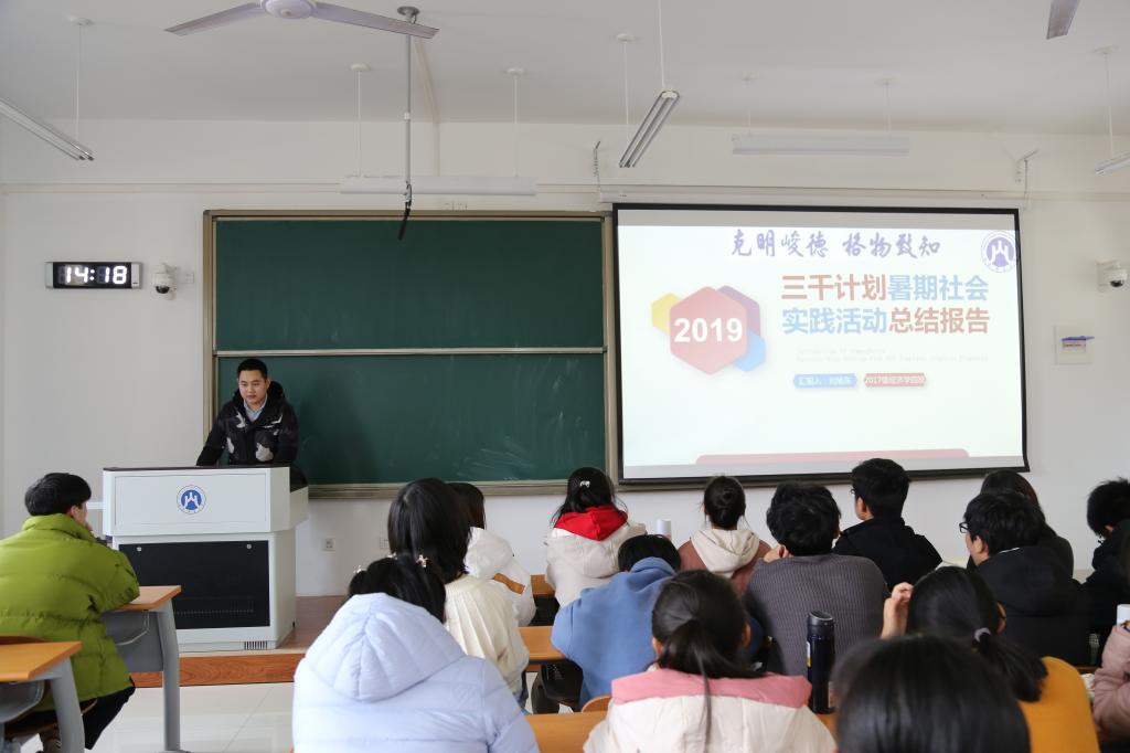 各位分享人都有着丰富的实战经验,他们结合自己的社会实践经历,分别从选题参考、实践的基本流程和注意事项等方面为同学们深入剖析了“三千计划”社会实践以及创新创业大赛的比赛流程、参赛要求和经验心得。李心怡分析了“三千计划”重大项目评选标准,强调预调研的重要性,建议同学们要把实践落在实处,鼓励同学们注重后期的实践成果转化和深入研究;“经济学院山东省‘家电下乡’政策调研团队”队长刘旭东结合自己的课题向同学们展示了团队实践调研的过程,并就调研立项、调查问卷的设计、调研地点和内容、调研报告的写法等对同学们提出相关建议;“经济学院寿光市三元朱村特色农业模式调研团队”队长刘兆金分享其在农村经济实践调研过程中的具体流程和所思所得;李昕介绍了我院“关爱小屋”青年志愿者服务队成立背景、工作职责、组织构成、工作要求,以及近期不断拓宽校地合作渠道、深化合作领域,参与美丽乡村建设、助力脱贫攻坚、文明城市提升等方面志愿服务情况,分享了服务心得体会;盛云龙就创新创业比赛作了经验分享,介绍了一系列创新创业大赛,并结合自己参赛获奖项目,从项目选择、创业计划书的撰写等方面提出建议。